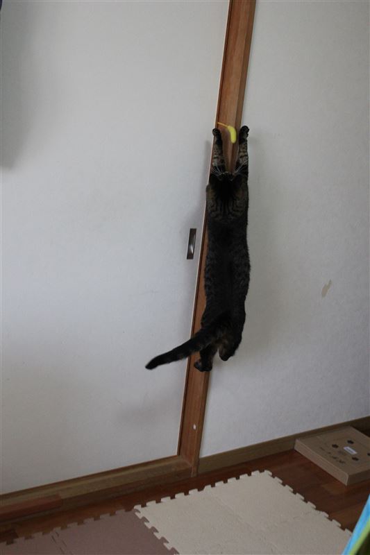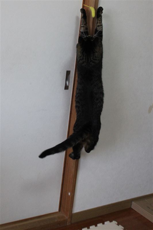とくにジャンプした写真をとる場合は、どのくらいジャンプするかわからないので 猫が全部はいるように連写して あとで気に入った1枚をトリミング しています。