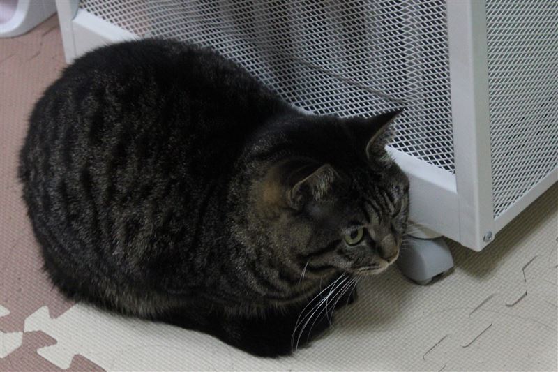 しかも今日はオイルヒーターをだして3日目なのですが バチッバチッという音がしたらヒーターがついていると学んだ ようで、音がした途端にイスから移動してはりついていました。