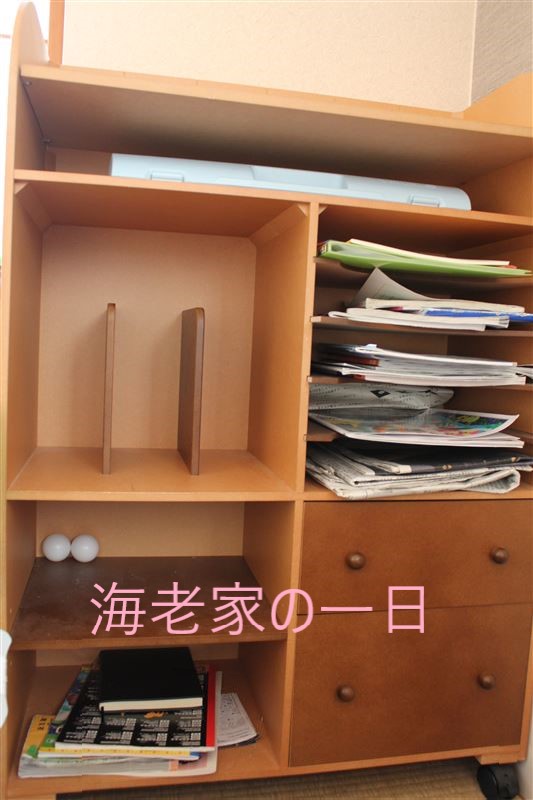 海老家では買って2カ月で一番上の棚がまがってきて、ランドセルを置くと重さでビスがはずれるようになったので、